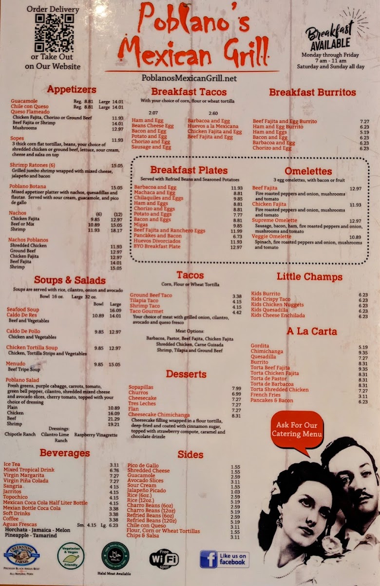 At Poblano's, every dish is crafted with care, offering a mouthwatering menu that features everything from traditional breakfast plates to sizzling fajitas. Start your day off right with their Barbacoa And Egg Plate, which perfectly combines tender barbacoa with your choice of eggs, or dive into the flavorful Machaca And Egg Plate that boasts scrambled eggs with shredded beef and fresh vegetables. Each bite is a medley of savory goodness that leaves you wanting more.
